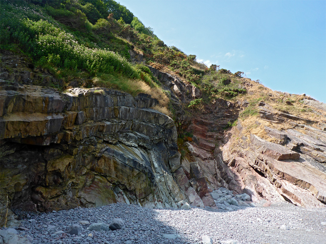 Folded strata in the cliffs on the east side of Countisbury Cove