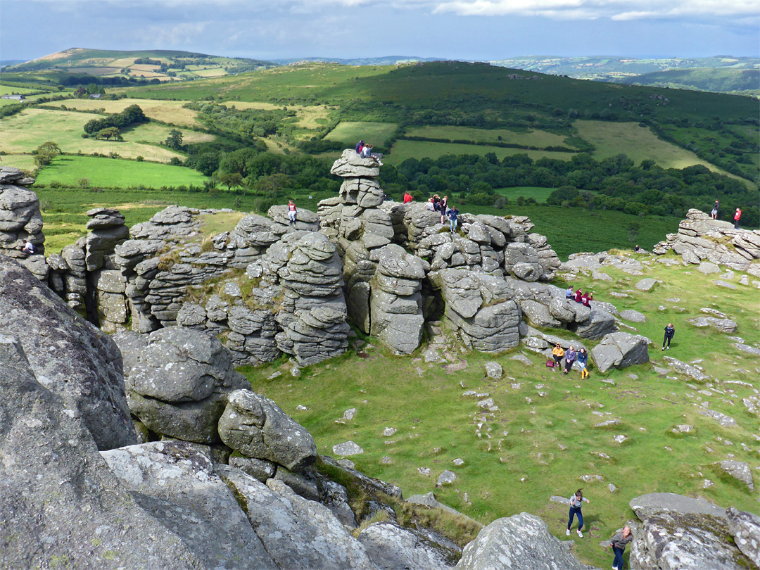 : granite, tors, rock formations, moors, people, Haytor Rocks and Hound Tor, Dartmoor National Park, Devon