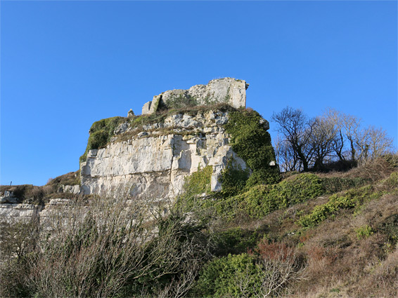 Minor but picturesque ruins on a cliff edge, overlooking the coast, on the east side of the Isle of Portland; a pentagonal tower, built in the 15th century. Above a pebble bay (Church Ope Cove), and near the ruins of the medieval St Andrew's Church