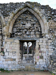 The ruins of St Oswald's Priory are only fragmentary, and are surrounded on most sides by modern development, close to Gloucester city centre, yet they are still atmospheric and evocative, on account of the aged masonry, in a variety of styles, and several well-preserved architectural features. The surviving elements are all from the priory church; most of the arcade wall between the nave and the north aisle, and an archway at the east end of this aisle, and are bordered by a tree-lined garden, after removal of several adjoining buildings that had encroached on the original site. The walls give an impression of great age, and place is peaceful, though the tranquillity is just a little spoilt by a nearby main road, the A417, here known as St Oswald's Road.