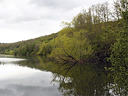To the north, the lake is bordered by the steep, wooded slopes of Dinmore Hill, on top of which is Queenswood County Park & Arboretum. The nature reserve is reached by the road to Bodenham village, and is open from dawn to dusk daily - the entry gate is closed in the evenings. Swimming and other watersports are not permitted. The site also has a picnic area, three bird hides and two orchards, plus several lakeside/riverside meadows, managed by seasonal grazing of sheep.