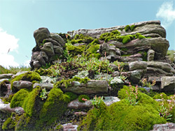 Like most of the Brecon Beacons, the hills are covered only by short grass with occasional rocky outcrops, so there is nothing to block the long distance views; north across the valleys and the farmland of central Wales, and south towards the Bristol Channel. Besides the many hikers, the peaks are also used daily by the military, as the short but steep climbs are ideal for training walks. The Taf Fechan valley contains two reservoirs and several areas of woodland, while some of the streams that drain the peaks form little waterfalls, but for the most part the attractions of this area are the high peaks, the open ridges and the dramatic views.