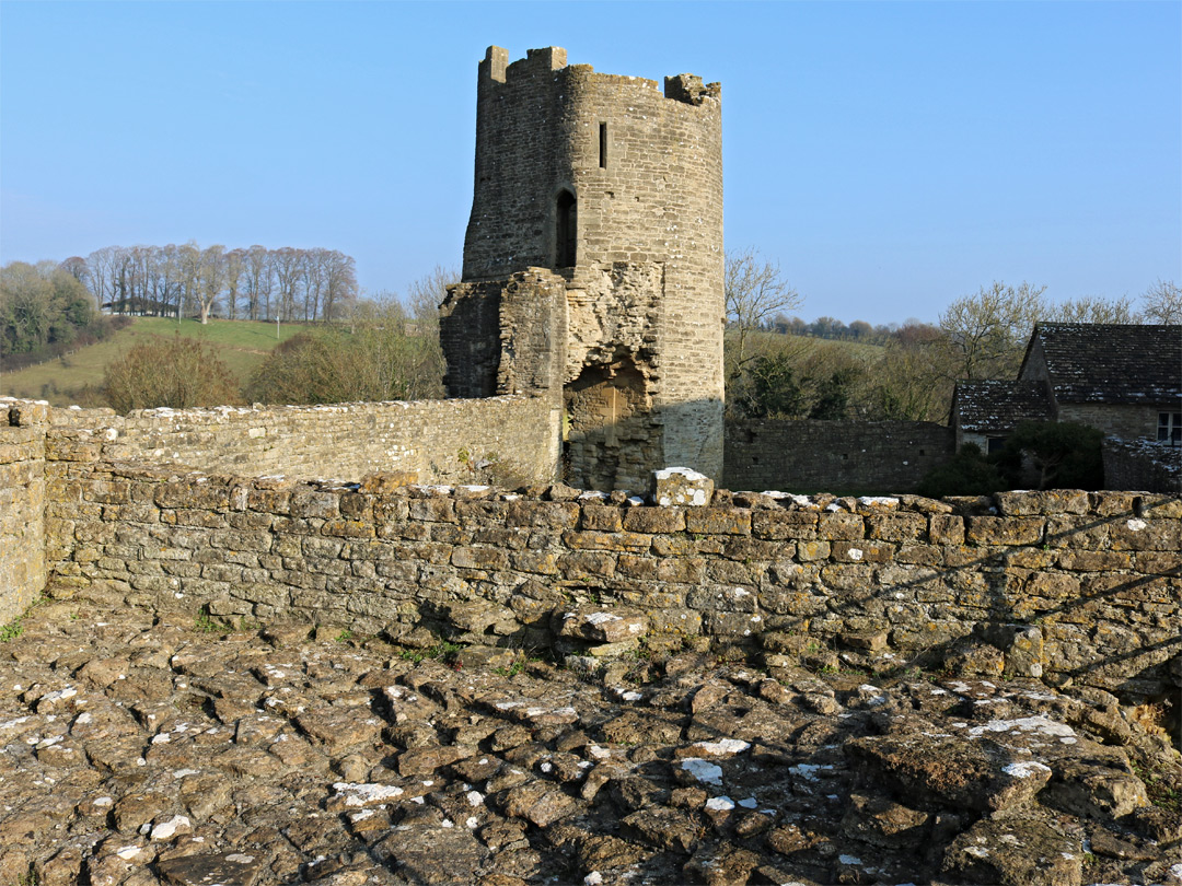 Part of the inner gatehouse, and a wall leading to the southeast tower