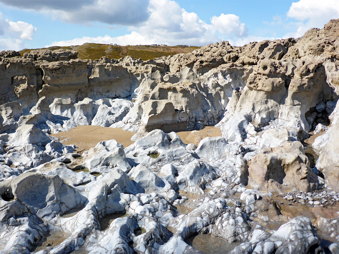 : rock formations, coastline, Three Cliffs Bay to Pwll-du Bay, Southgate, Pennard, Gower Peninsula, Swansea