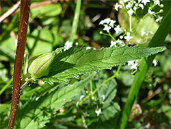 Nettle-like; ovate to triangular, with cordate bases. Stalked, and up to 10 cm long, with coarsely-toothed margins