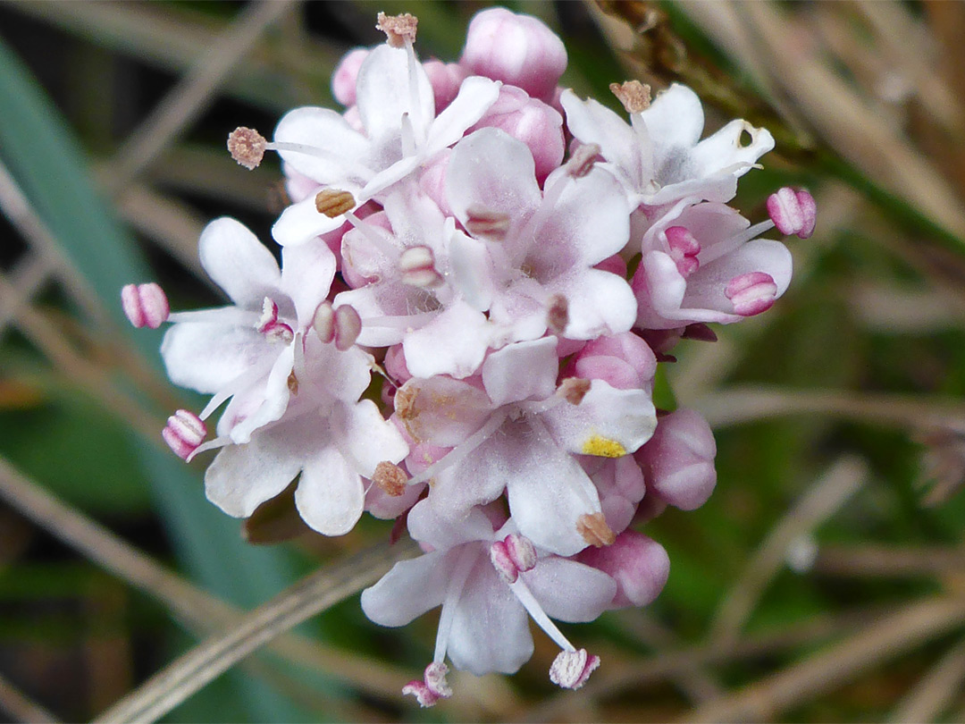 Pale pink flowers of marsh valerian (valeriana dioica), Cwm Cadlan, Rhondda Cynon Taff
