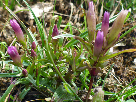 Narrowly lanceolate, up to 2 cm long; at the base (visible only in the first, non-flowering year) and between five and 14 opposite pairs along the stem