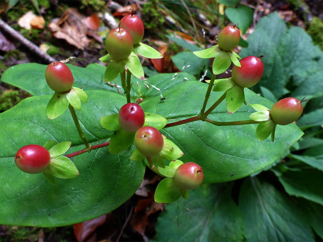 Red berries of tutsan, hypercium androsaemum - Nant Cynafon, Brecon Beacons