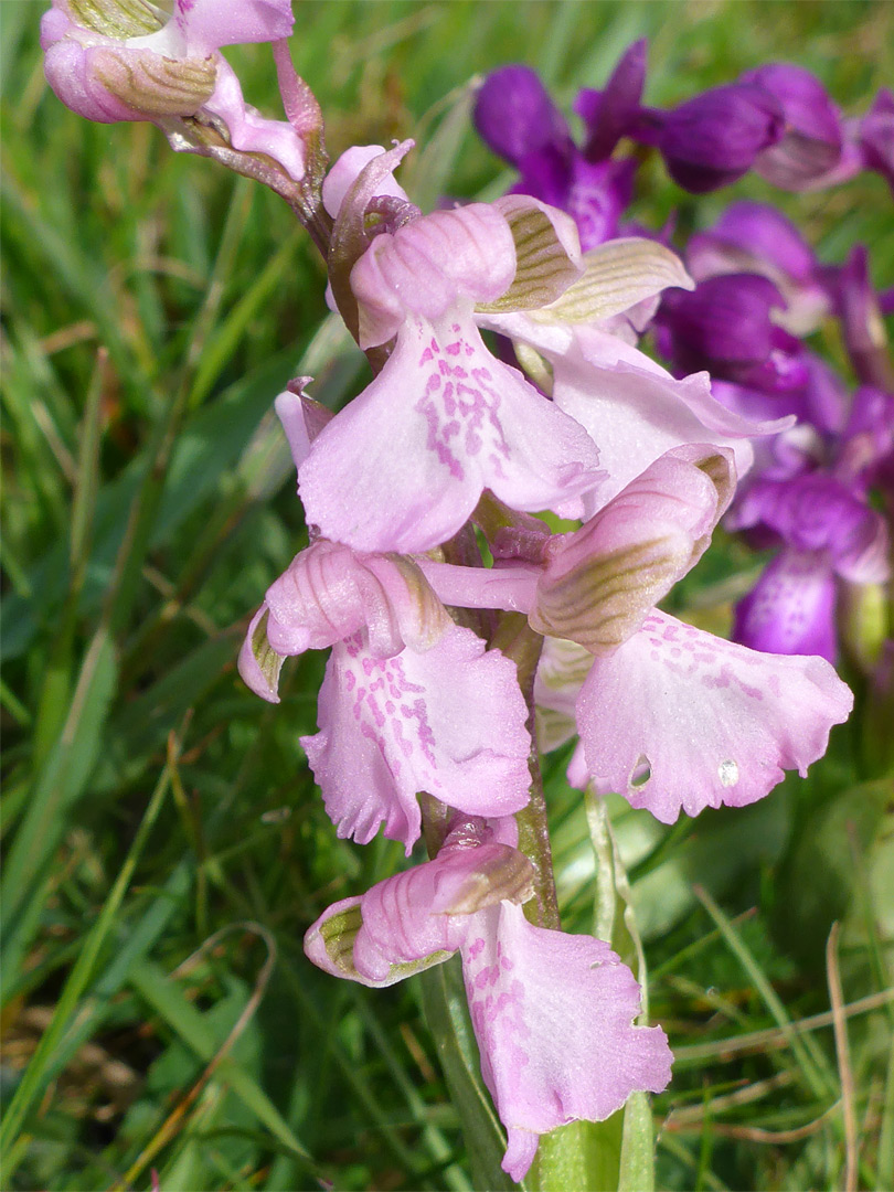 Pale pink flowers - anacamptis morio (green-winged orchid), Scotney Castle, Kent
