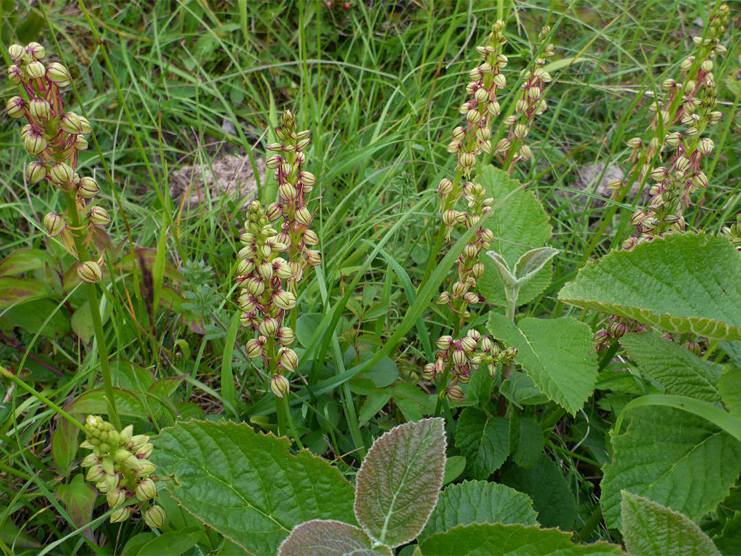 Many flowering stems - man orchid (orchis anthropophora), Darland Banks, Kent