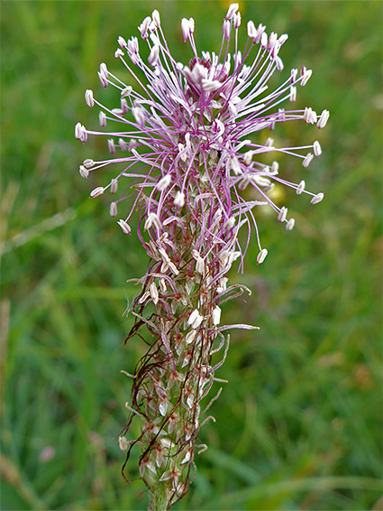 Plantago media is identified by its hoary (hairy) stem and leaves.