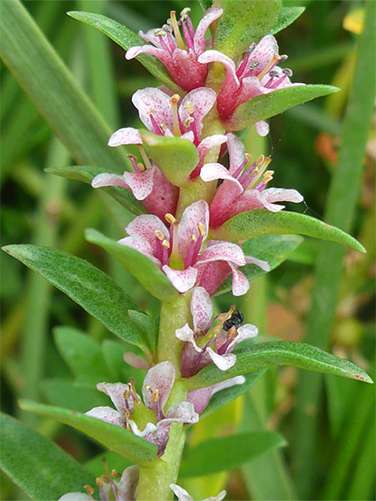 Succulent, opposite, narrowly ovate, up to 12 mm long